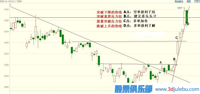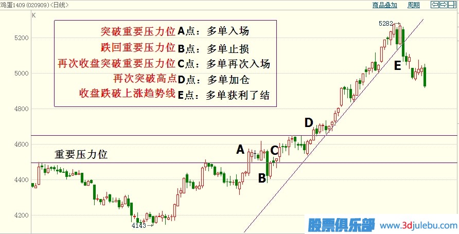 1、向上突破重要壓力位,多單入場(chǎng); (收盤(pán)跌回重要壓力位下方止損)