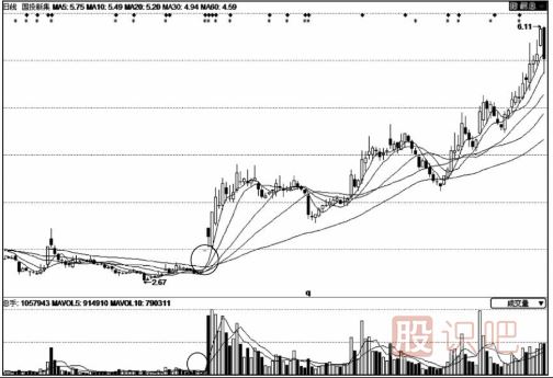 呈現出多頭排列的形態(tài)。如果出現一開(kāi)盤(pán)就向上跳空漲停的走勢,即使在接下來(lái)的幾天里股價(jià)出現回落,當回落到這個(gè)跳空缺口附近時(shí)也必將受到強大的支撐。