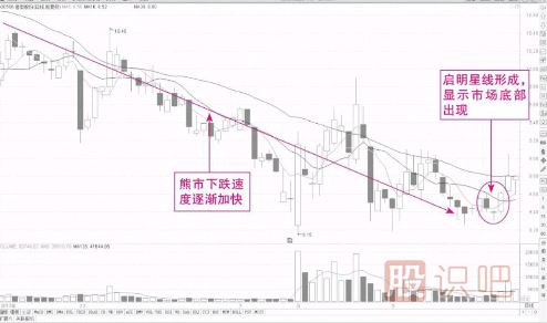 大,這是多方力量較為充足的表現。因此可以說(shuō),啟明星線(xiàn)形態(tài)是個(gè)股階段性下跌結束的信號,它預示著(zhù)隨后即將出現的反彈回升走勢。
