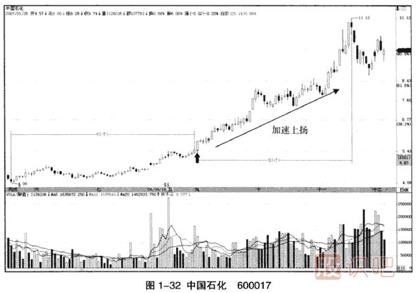 (1)加速大陽(yáng)線(xiàn)出現之后,股價(jià)沒(méi)有像上文日照港一樣展開(kāi)快速拉升。