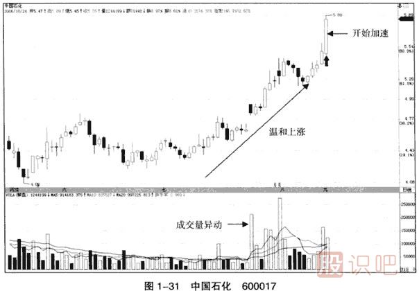 (1)圖1-31是中國石化(600017)2006年6月9日至2006年10月24日的日線(xiàn)圖。