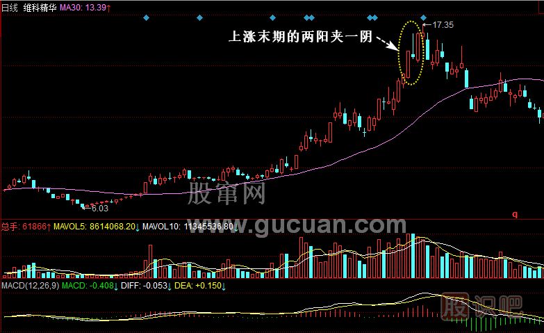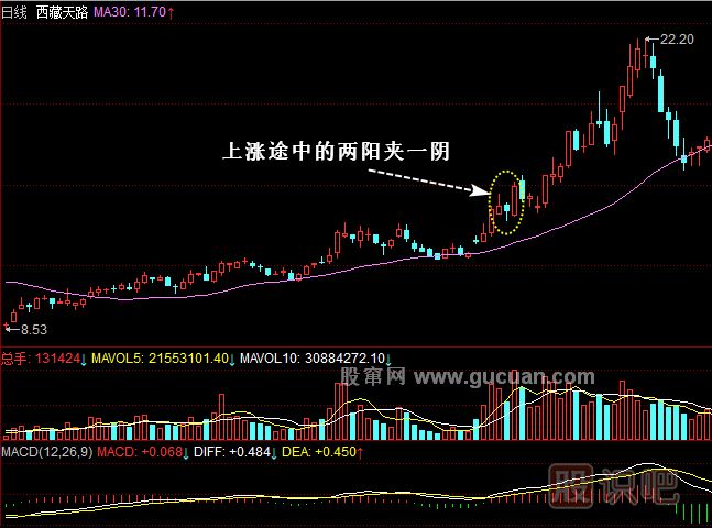 K線(xiàn)組合:兩陽(yáng)夾一陰