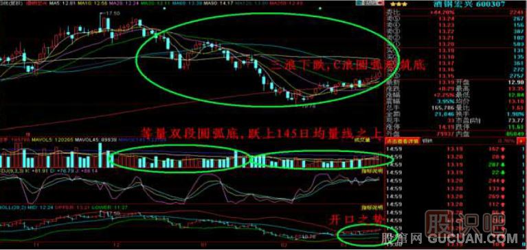 二、成交量圓弧底反彈技術(shù)應用:酒鋼宏興(600307)