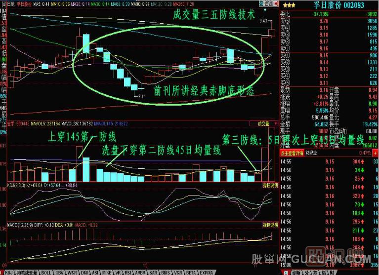 2、第三防線(xiàn)即5日均量線(xiàn)再次上穿45日均量線(xiàn);