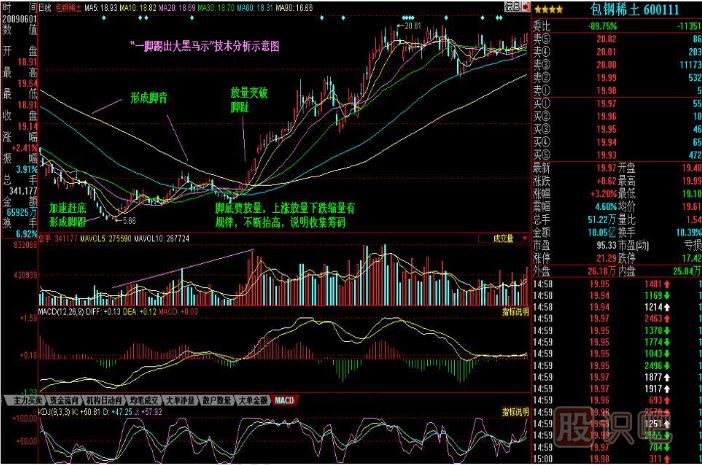 大熊股是漲出來(lái)的,大牛股是跌出來(lái)的,這一現象往往演繹得更為極端。利用“物極必反,否極泰來(lái)”的股市規律,把握跌出來(lái)的大牛股是一大操作技巧。目前許多底部藍籌股具有“一腳踢出大黑馬一足形底”的獨特技術(shù)形態(tài),前期重點(diǎn)捕捉推薦的大黑馬包鋼稀土(600111),這是這一技術(shù)的實(shí)戰運用,“一腳踢出大黑馬”足形底的形態(tài)要點(diǎn):