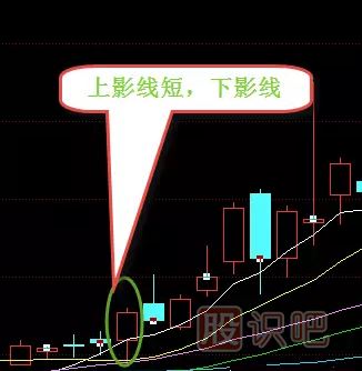 6.上影線(xiàn)短,下影線(xiàn)長(cháng)表示上漲力道強,下跌后回升,如下圖: