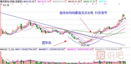 南風(fēng)股份(300004)該股在2010年2月前后出現了一個(gè)漂亮的圓形底,此時(shí)可以觀(guān)望,激進(jìn)投資者可以小倉位入局,隨后股價(jià)突破了下降趨勢線(xiàn),出現了趨勢和均線(xiàn)最佳買(mǎi)點(diǎn)和均線(xiàn)最佳買(mǎi)點(diǎn),投資者此時(shí)可適當加大倉位。另外這里需要強調的是,這個(gè)地方要有相對的止損預案,有主力資金參與也并不意味著(zhù)股票不會(huì )被套,萬(wàn)一主力資金被套了咋辦?這幾年公募基金、私募基金等都出現了千億級別的虧損,要知道市場(chǎng)唯一的主宰是趨勢本身。