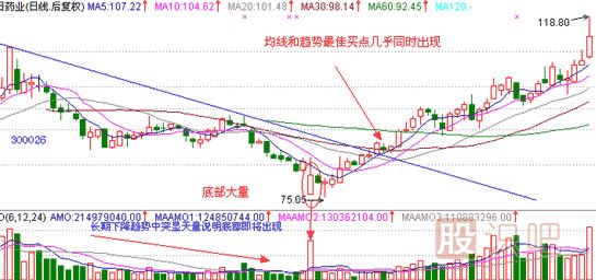 2.底部大量出現后,需股價(jià)突破下降趨勢,并出現趨勢最佳買(mǎi)點(diǎn)時(shí)再參與,不要見(jiàn)到底部大量一出現就立馬入場(chǎng),這樣猴急狠容易犯錯誤。