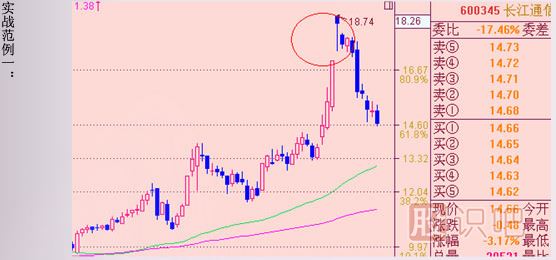 600345,長(cháng)江通信,這個(gè)股票自從我去年11月份在中證內參提示一下,股價(jià)已從11元漲至18.7元,其實(shí)這個(gè)股票在我頭部研究中多次出現,是我布局的重倉股,群里是在18.50元出局,后市調整到位后還有新高。我們先來(lái)看看,2010年1月14日,該股出現上吊線(xiàn),并且和前后兩根K線(xiàn)組成黃昏之星形態(tài),這時(shí)我為什么提示出局或減倉,大家看,股價(jià)離決策線(xiàn)盒趨勢線(xiàn)太遠了,這就意味著(zhù)中長(cháng)線(xiàn)獲利者太多,股價(jià)一旦出現調整就是致命了,這幾天的走勢也驗證了當時(shí)的擔心,從形態(tài)看,股價(jià)底部還沒(méi)探明,止跌信號沒(méi)出現。(圖中綠色代表決策線(xiàn),粉色代表趨勢線(xiàn))