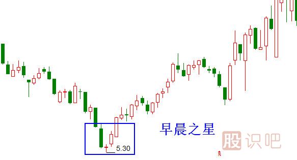 早晨之星又稱(chēng)為“黎明之星”“星星”“希望之星”,由三根K線(xiàn)組成,它是一種行情見(jiàn)底轉勢形態(tài)(如圖)。這種形態(tài)如果出現在下跌趨勢中,投資者應予以注意,因為此時(shí)的趨勢已發(fā)出比較明確的反轉信號,是一個(gè)非常好的買(mǎi)入時(shí)機。
