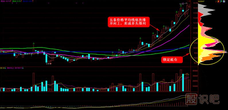 ①5日、10日、20日、60日、120日價(jià)格平均線(xiàn)依次多頭排列,即5日>10日>20日>60日>120日。