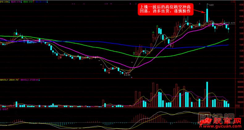 ③在強勢拉升一波后的高位的跳空突破缺口也要慎重操作,以防止莊家誘多高開(kāi)沖高向下瘋狂拋售