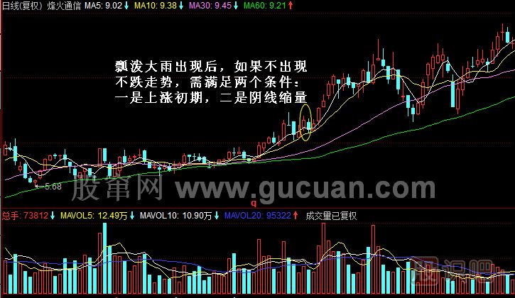 4.瓢潑大雨K線(xiàn)組合出現后,股價(jià)不跌反漲的情況極少,且必須滿(mǎn)足相關(guān)條件。