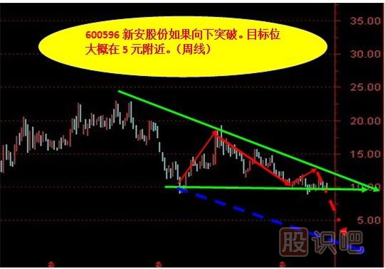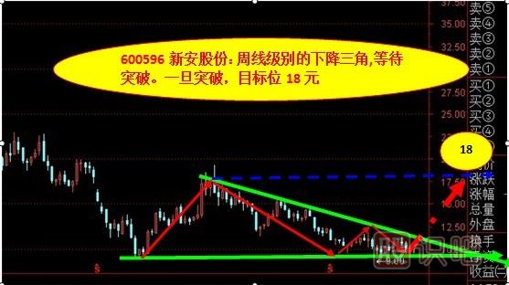 600596 新安股份周線(xiàn)級別的下降三角形。目前還不能判定它是處于底部還是頂部。因為這個(gè)股票和特殊,莊家