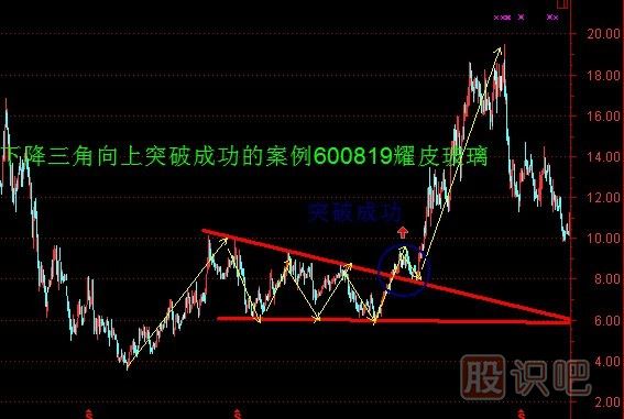 要點(diǎn)和之前分析的上升三角相似。主要關(guān)注量能,在三角整理的區間相對縮量,突破時(shí)放量。一般這個(gè)形態(tài)會(huì )出現在下跌的過(guò)程中間階段,有時(shí)候出現在頂部和底部。