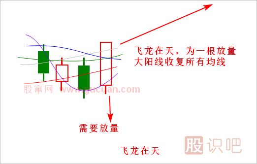 2.飛龍在天需要一根陽(yáng)線(xiàn)一次上穿所有均線(xiàn)壓制,且放量。