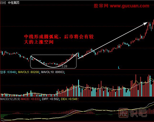 3.圓弧底構筑期間可分批嘗試性買(mǎi)入,一旦突破圓弧區域后繼續加倉買(mǎi)入。