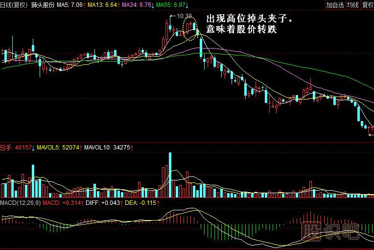 3.掉頭夾子K線(xiàn)組合是股價(jià)轉勢的信號。