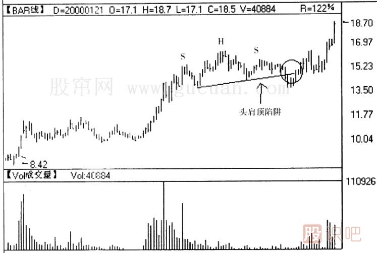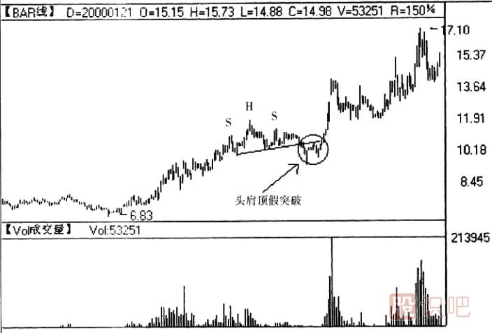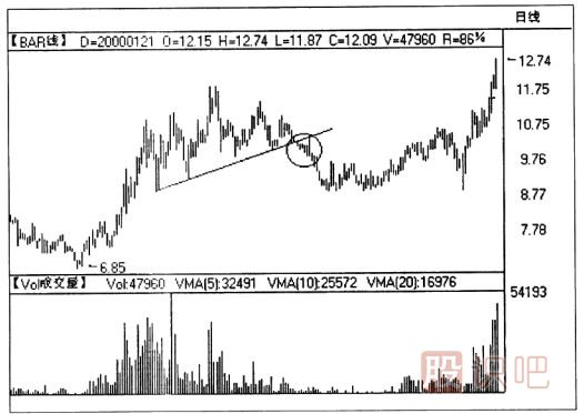 (2)市場(chǎng)在突破頸線(xiàn)之后,常常會(huì )出現反抽。由于受到頸線(xiàn)的壓制,反抽的幅度是有限的。此外,投資者還應該關(guān)注反抽過(guò)程中成交量的變化。