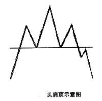 2.頭肩頂的基本形態(tài)由三個(gè)高峰組成:左右兩個(gè)高峰的制高點(diǎn)(即肩)基本處于同一水平位置,而中間的高峰最高點(diǎn)(即頭)明顯高于兩側的高點(diǎn)。這是典型的頭肩頂形態(tài),實(shí)際操作中,有可能遇到兩個(gè)或以上的左肩或右肩等變異,其技術(shù)含義相同。如圖