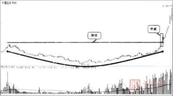 大多數情況下,圓弧底預示著(zhù)主力在收集籌碼,一旦收集完成,股價(jià)會(huì )有可觀(guān)的升幅。因此,當股價(jià)突破圓弧底并有成交量配合時(shí),投資者應果斷跟進(jìn)。