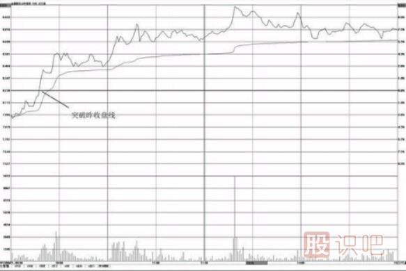 對股票的技術k線分析探析分時圖買入點-突破昨天收盤線