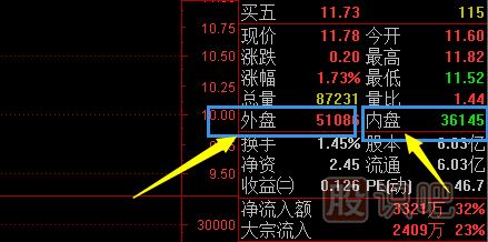 主動(dòng)性買(mǎi)盤(pán)成交的為外盤(pán),主動(dòng)性賣(mài)盤(pán)成交的為內盤(pán)。其實(shí)內外盤(pán)并不能反映真正的買(mǎi)賣(mài)盤(pán)力量,成交的買(mǎi)盤(pán)量和成交的賣(mài)盤(pán)量一定是