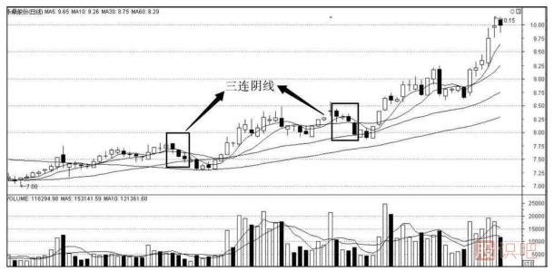2.三連陰線(xiàn)的實(shí)戰操作要點(diǎn)