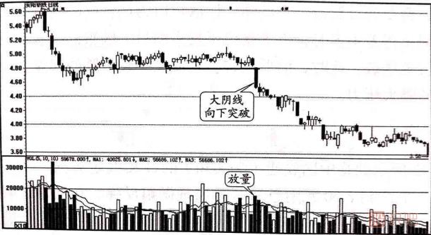 (1)股價(jià)跌破整理區出現的中、大陰線(xiàn)并不需要有成交量放大的配合。