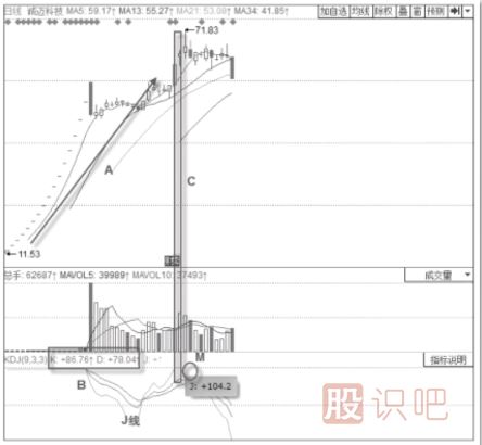 股票技術(shù)k線圖分析說說KDJ指標(biāo)的低位高強(qiáng)度鈍化后的最佳買點(diǎn)KDJ指標(biāo)的低位高強(qiáng)度鈍化【技術(shù)形態(tài)】將KDJ指標(biāo)的參數(shù)設(shè)置為(34,3,3),運(yùn)用此參數(shù)于個(gè)股的日線級別中,當(dāng)日線級別出現(xiàn)KDJ指標(biāo)于相...