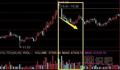 高位區,一旦個(gè)股出現了明顯的滯漲走勢,由于缺少短線(xiàn)波動(dòng)、短線(xiàn)盤(pán)交易不積極,多空雙方的交鋒就會(huì )趨于緩和,從而出現縮量。