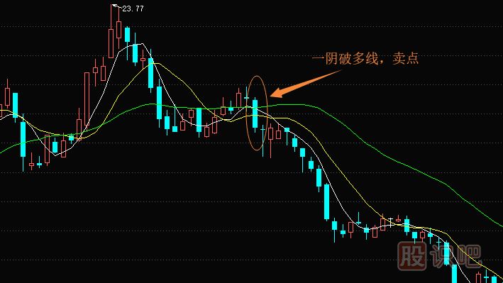 當股價(jià)橫盤(pán)整理一段時(shí)間,多條均線(xiàn)糾纏在一起時(shí),如果出現一根長(cháng)陰線(xiàn),一舉向下跌破了多條均線(xiàn),就形成一陰破多線(xiàn)的形態(tài)。