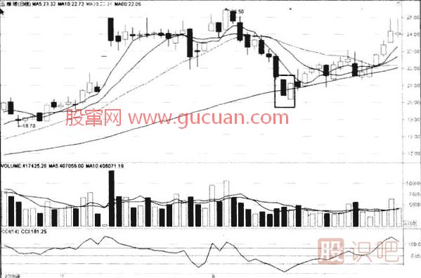 在圖中可以看到,在上漲到60日線(xiàn)附近時(shí)出現晚星,隨后下跌。