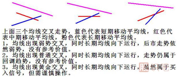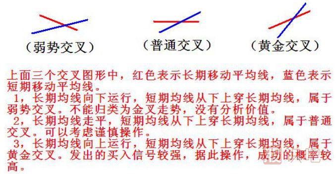 經(jīng)過(guò)股市長(cháng)期實(shí)戰觀(guān)察,兩條不同周期均線(xiàn)交叉的力度有強有弱。有些交叉雖然也是短期均線(xiàn)上穿長(cháng)期均線(xiàn),但只能算的上是普通交叉而不能歸類(lèi)為黃金交叉,甚至沒(méi)有參考價(jià)值。