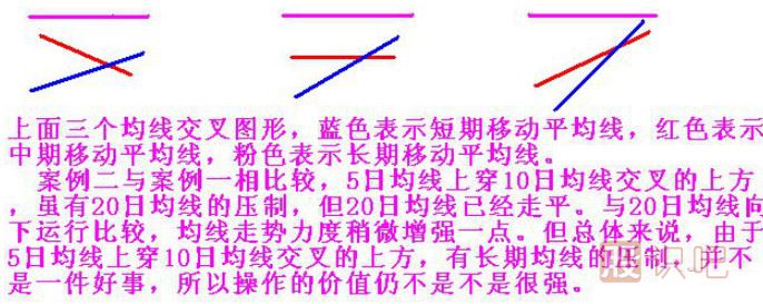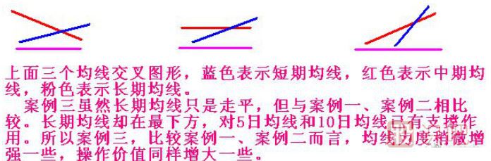 例:5日均線(xiàn)上穿10日均線(xiàn)的三種交叉走勢:
