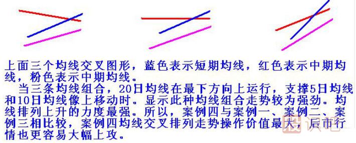 案例4:5日均線(xiàn)上穿10日均線(xiàn),20日均線(xiàn)在最下方支撐交叉均線(xiàn),同時(shí)20日均線(xiàn)向上運行: