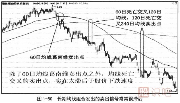 120日均線(xiàn)死亡交叉240日均線(xiàn),發(fā)出長(cháng)線(xiàn)清倉離場(chǎng)信號時(shí),股價(jià)已經(jīng)跌得而目全非。即便是60日均線(xiàn)死亡交叉120日均線(xiàn)時(shí),股價(jià)也早已深幅下跌。