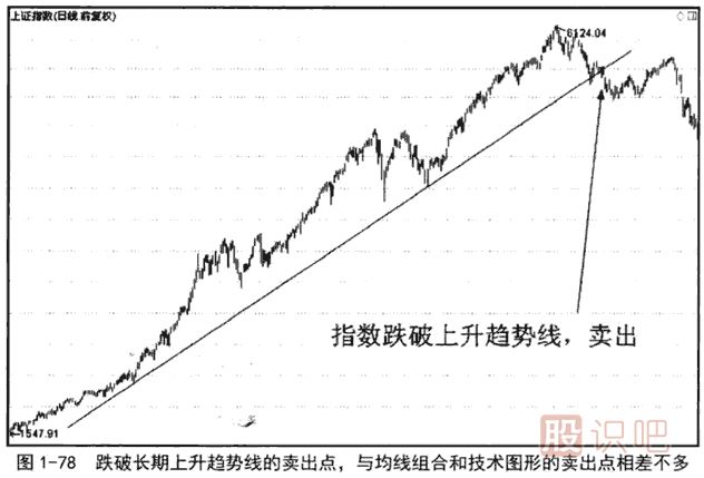 跌破長(cháng)期上升趨勢線(xiàn),雖然不能確定大盤(pán)由牛走熊,但即使繼續上漲,指數也一定不會(huì )再沿著(zhù)原有的上升角度向上運行了,至多會(huì )以更緩的角度上漲。股價(jià)或指數跌破長(cháng)期上升趨勢線(xiàn)后,無(wú)論是長(cháng)線(xiàn)交易者還是中短線(xiàn)交易者,都應該清倉離場(chǎng),退出觀(guān)察。