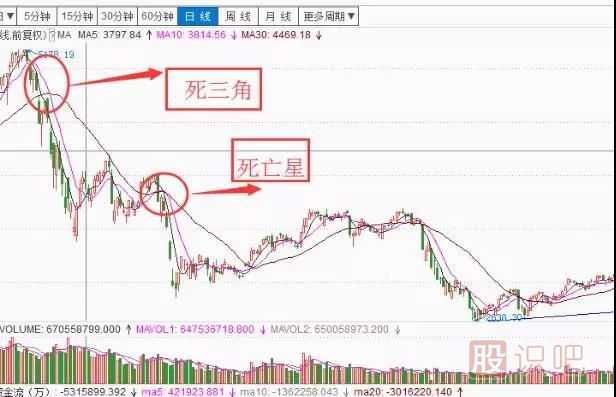 死亡星,以滬指日線(xiàn)圖為例: