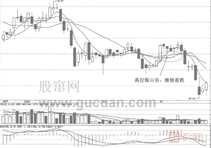 2.高位銀山谷,后市看跌,擇機離場(chǎng)。