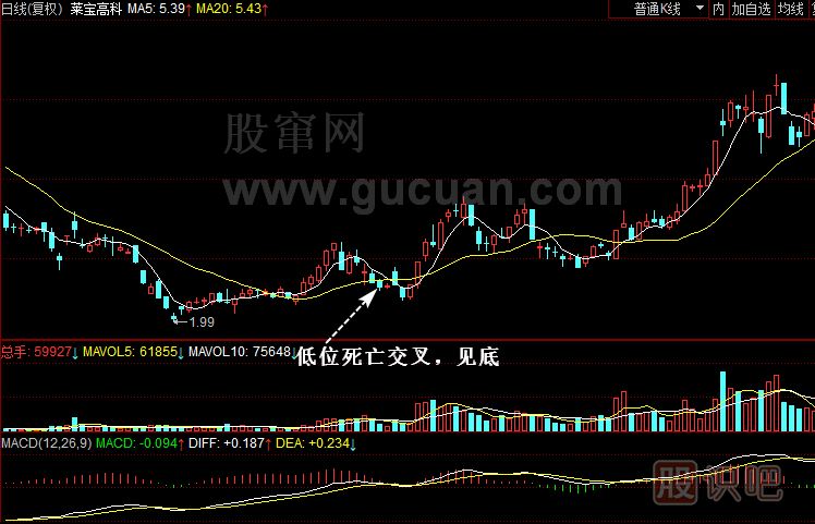 1.低位均線(xiàn)死亡交叉,警惕見(jiàn)底,擇機人場(chǎng)。