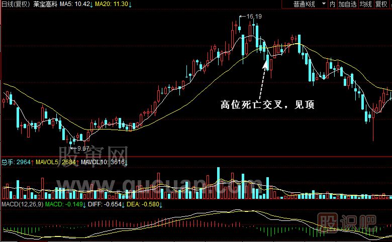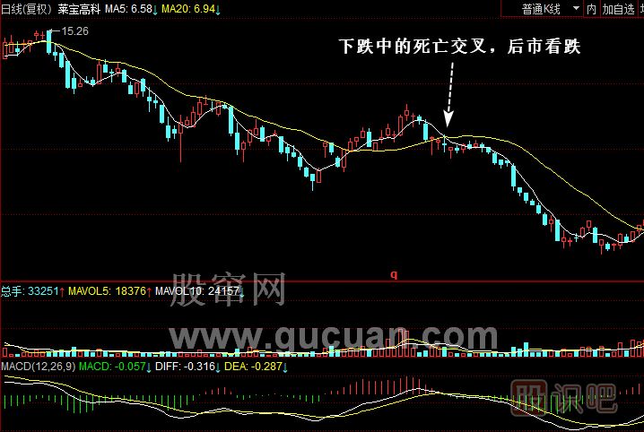 (3)下跌趨勢中均線(xiàn)死亡交叉,后市看跌,擇機離場(chǎng)。