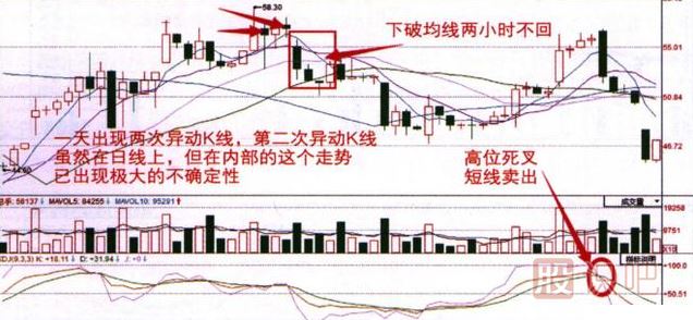 (6)5日、10日均線(xiàn)的方向死叉向下,此時(shí)如果60日均線(xiàn)也能方向向下,則助跌。
