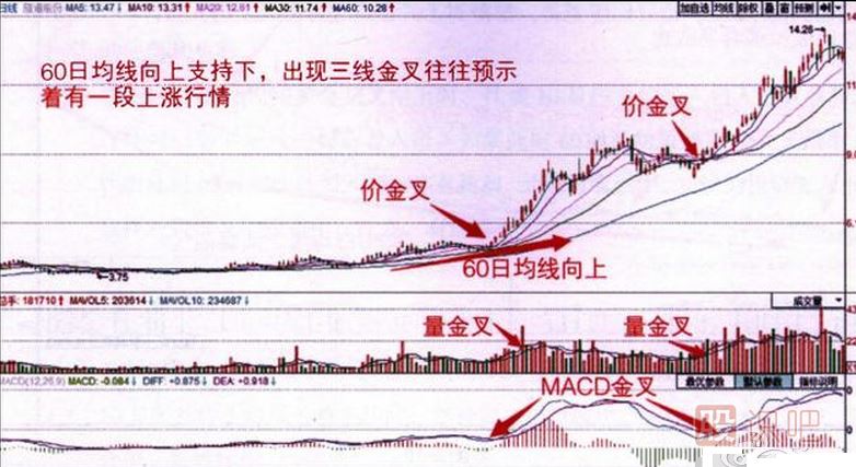 (2)這里要注意后三線(xiàn)金叉尤其強勢。