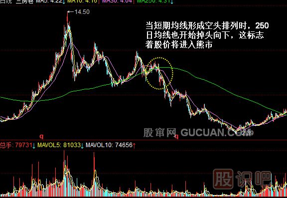 當股價(jià)有效跌破250日均線(xiàn)后要馬上離場(chǎng)。因為250日均線(xiàn)一旦被跌破,就標志著(zhù)股指或股價(jià)就此走熊,至于能跌到哪里去誰(shuí)也無(wú)法預料,所以只有盡快出局才能少受損失。