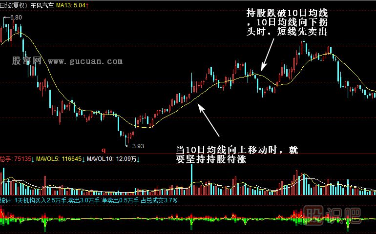 (4)在上升趨勢中,如果股價(jià)有效跌破5日均線(xiàn)后,多是跌至10日或20日均線(xiàn)的位置才止住跌勢,因為很多時(shí)候主力把10日或20日均線(xiàn)作為他們的護盤(pán)線(xiàn)。如股價(jià)能在10日或20日均線(xiàn)處止跌,新一輪的上漲會(huì )再次啟動(dòng),此時(shí)投資者可繼續跟進(jìn)做多,對于在高位拋出股票的短線(xiàn)操作者來(lái)說(shuō),也可將籌碼重新接回。