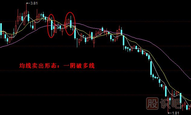 均線(xiàn)賣(mài)出形態(tài):一陰破多線(xiàn)