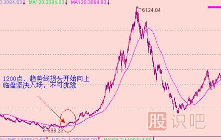 趨勢線(xiàn)就是通常所說(shuō)的120日均線(xiàn),俗稱(chēng)半年線(xiàn),有的人也稱(chēng)之為牛熊線(xiàn)。這里我們所說(shuō)的趨勢線(xiàn)可用于分時(shí)、日線(xiàn)、周線(xiàn)、月線(xiàn),但如果不特別強調就僅指日線(xiàn)。趨勢線(xiàn)是股市中長(cháng)期走勢的風(fēng)向標,是絕大多數主力、莊家進(jìn)退的依據,在實(shí)盤(pán)操作中對我們有巨大的指導意義。