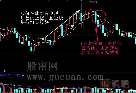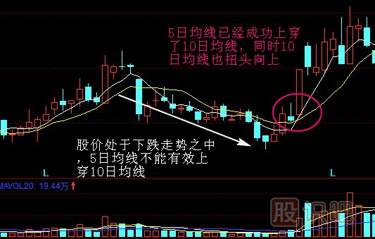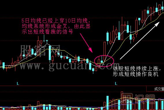 5日均線(xiàn)和10日均線(xiàn)的交叉對于短線(xiàn)操作具有很重要的參考價(jià)值,其表現在以下兩個(gè)方面: