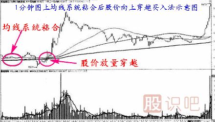 第一種 均線(xiàn)系統粘合后股價(jià)向上穿越買(mǎi)入法